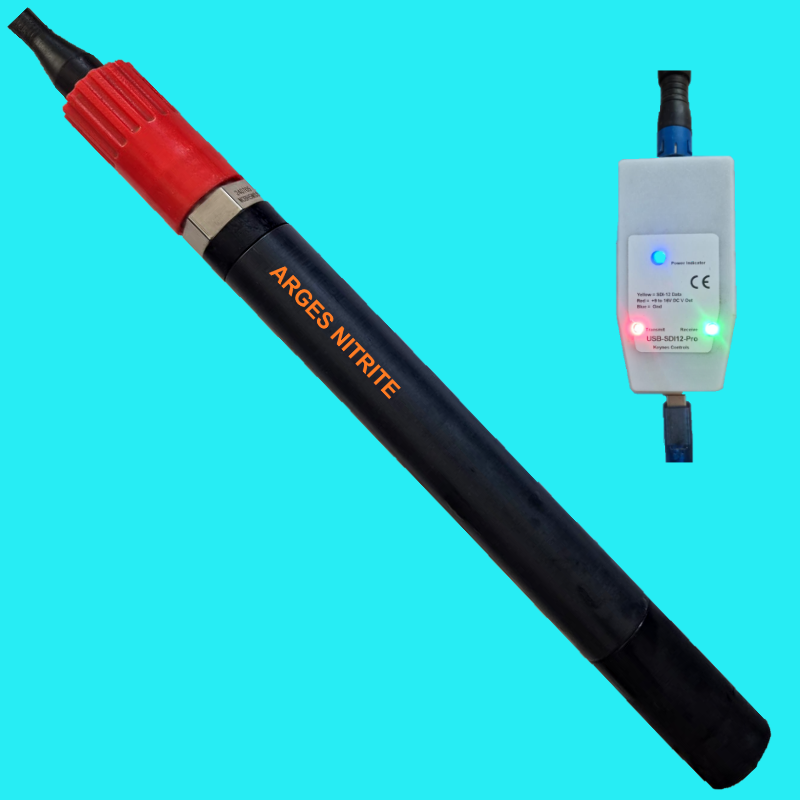 All of the ARGES chemical sensors and multiparameter housings can directly connect to a Windows PC using the optional USB-SDI12-AG1 media converter as shown in the images below. The media converter powers the sensors directly from the PC USB port.