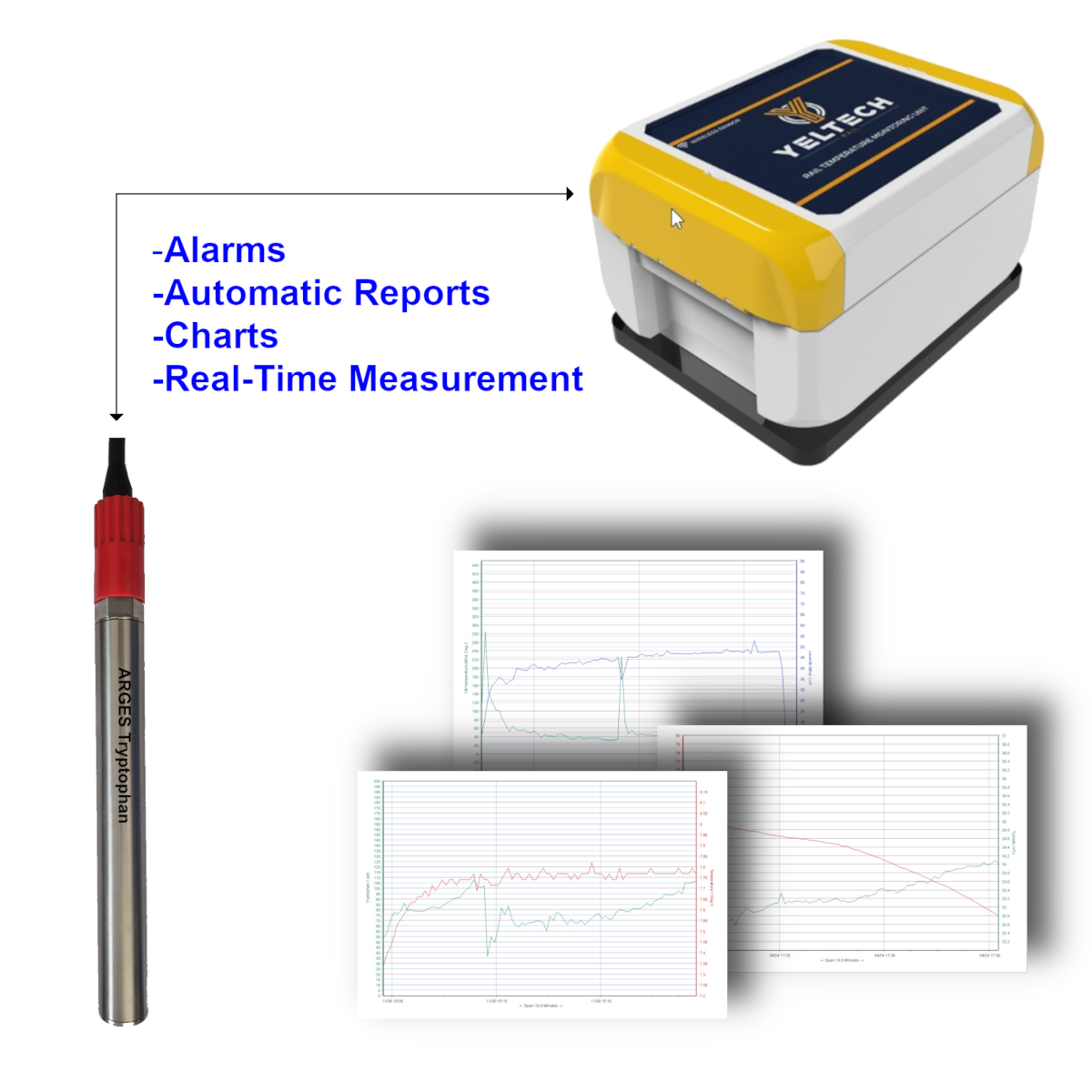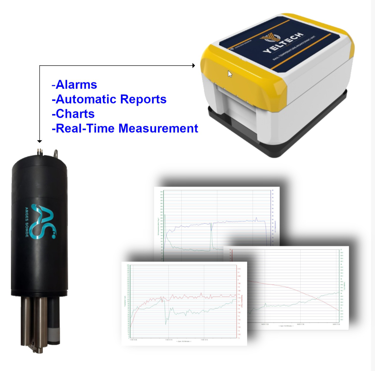 A Web Portal enables the user to see the results directly on a web. The logger shown below is easy to use, and is fastened magnetically onto any steel structure for fast installation. The User can set the device to report measurements at defined interval, and upon alarm level concentrations being detected. The Yeltec logger is suitable for many applications but additional features for the real-time measurements of Nitrite etc.. where calaculations using combined sensor measurements are required.