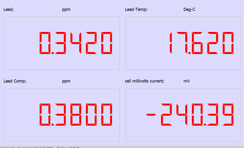 The QLOG software support a range panel meter displays that can be used to group measurements into easy to understand displays.