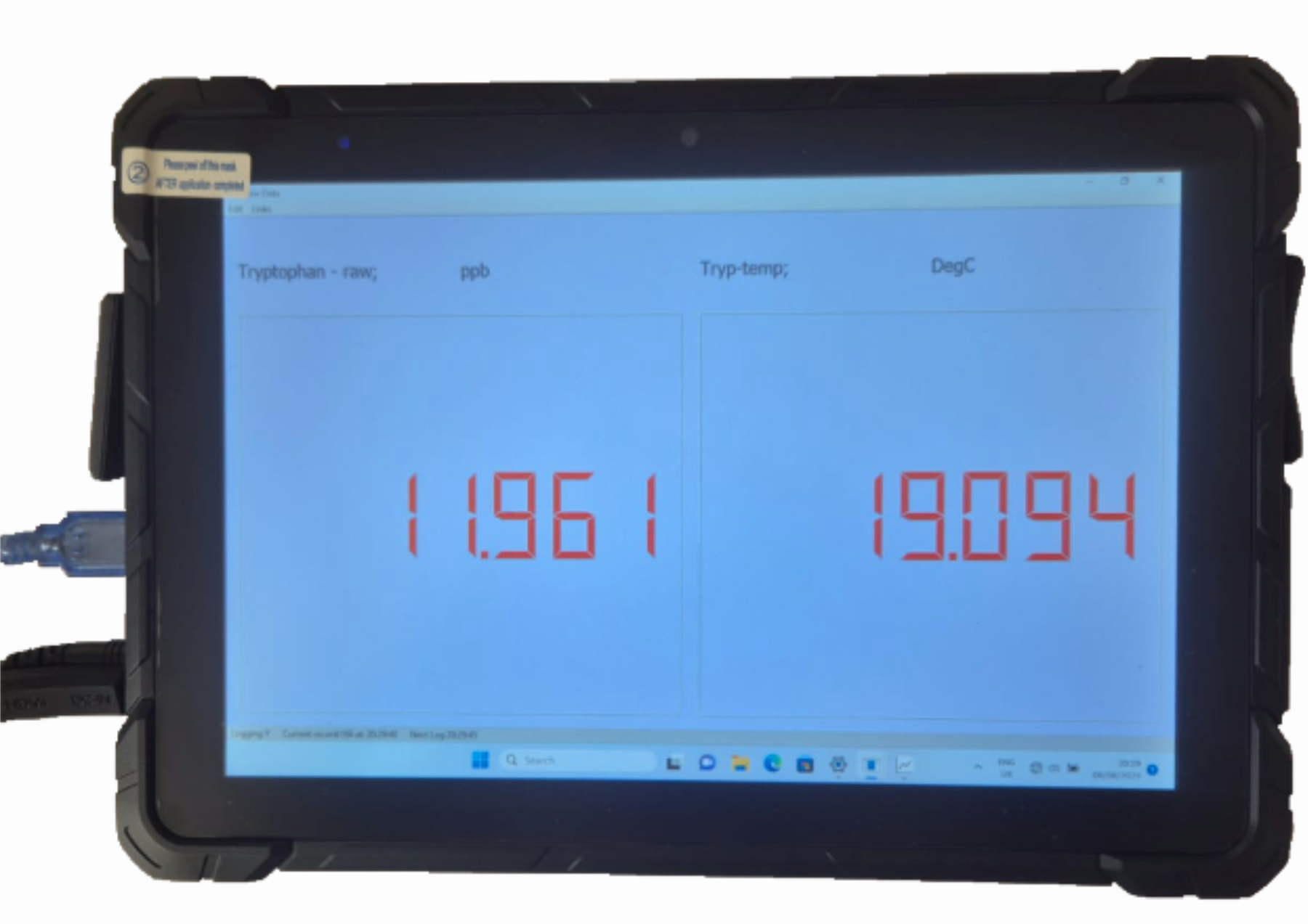 The image opposite shows a single ARGES Fluorometer real-time results on the handheld display.